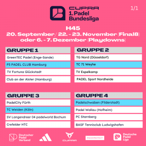 Am 20.09.2025 findet der Vorrundenspieltag der Herren 45-Bundesliga statt. Unsere 1. Herren 45-Mannschaft ist am Start und hat ein Heimspiel!